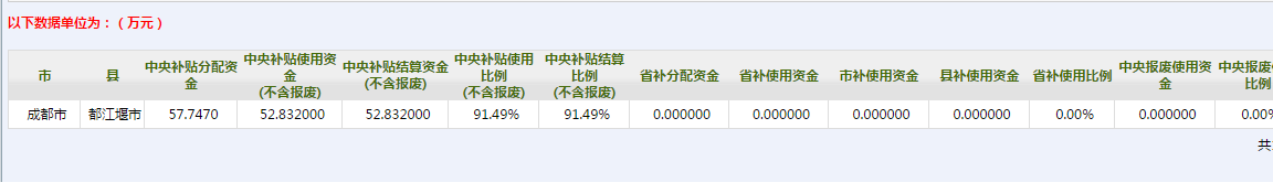 2019年8月都江堰市2018年购机补贴资金使用及结算进度